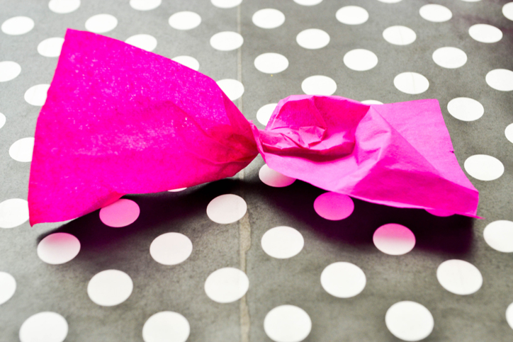 -Very light-weight colored paper on the flimsier side so that the petals fluff up and look more ruffle-y (You can even start with white and dye it later so it looks more natural). Mine is hot fuchsia.